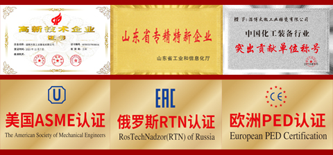 淄博太極在中國搪玻璃設(shè)備制造行業(yè)中首家通過ISO90001質(zhì)量體系認(rèn)證,并擁有美國ASME認(rèn)證、歐洲PED認(rèn)證以及國家部門頒發(fā)的搪玻璃制造許可證、進(jìn)出口許可證和百余項(xiàng)榮譽(yù)證以及三十六項(xiàng)專利等。
