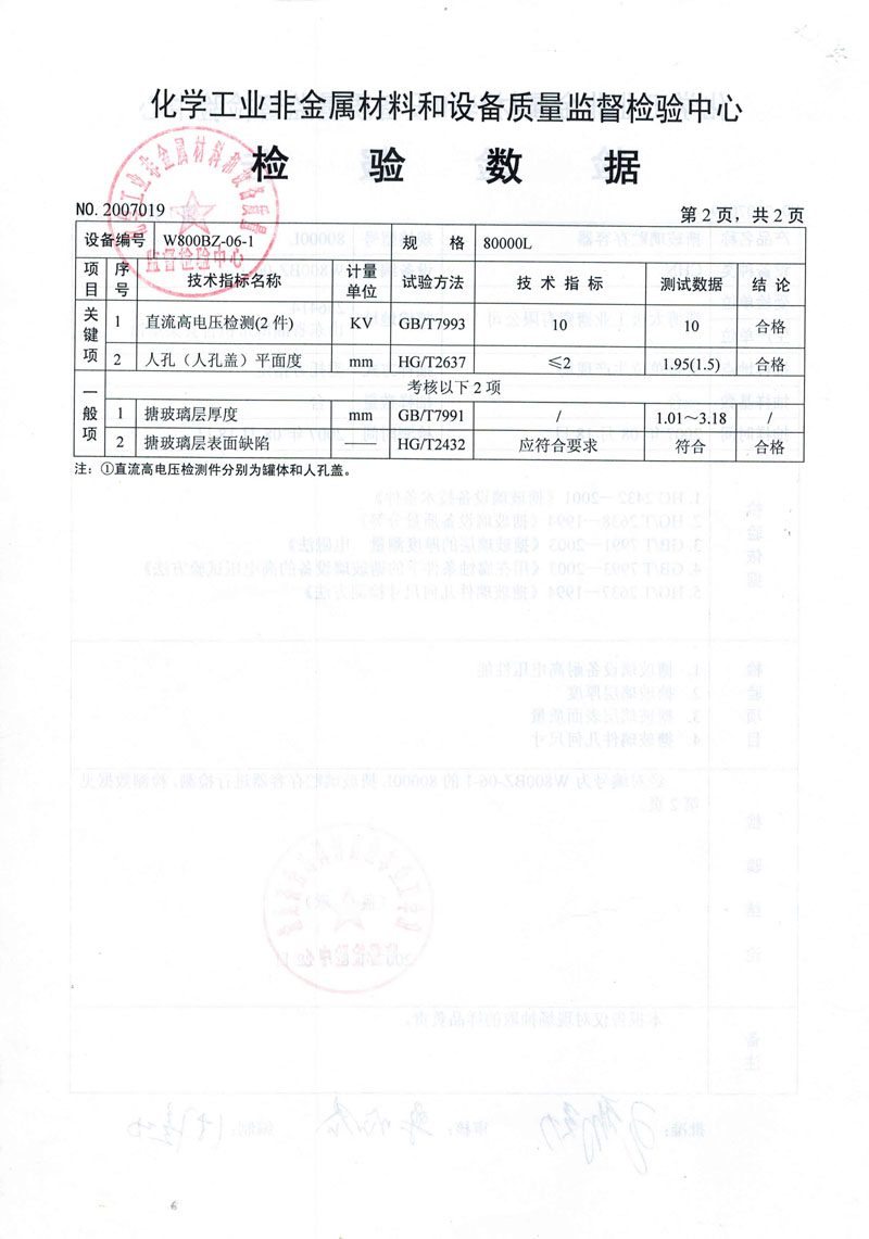 • 搪玻璃設(shè)備合格檢驗(yàn)報(bào)告